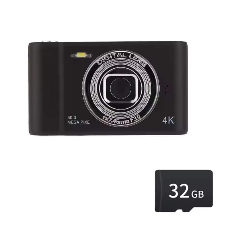 The camera supports standard SD, SDHC, and SDXC memory cards up to 128GB, ensuring ample storage space for thousands of high-resolution photos and videos.
