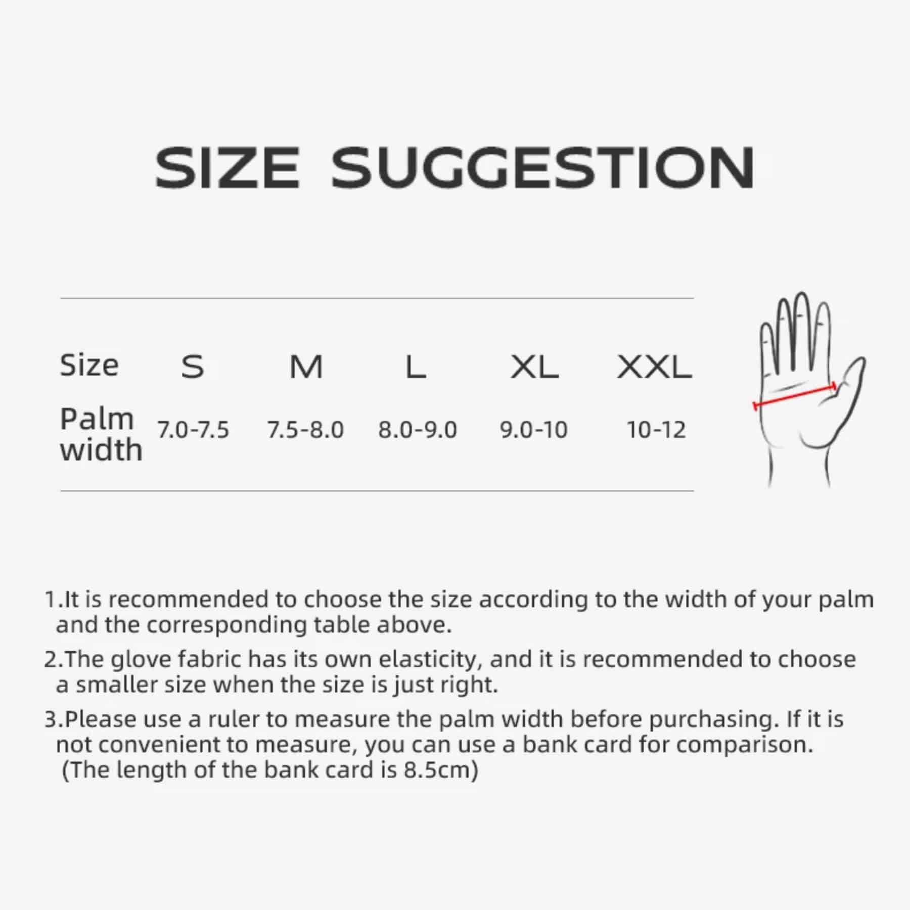 Measure your palm width at its widest point and consult our size chart. For Glovelox gloves, if you're between sizes, we recommend choosing the smaller option as the fabric has excellent stretch and will conform perfectly to your hand shape.