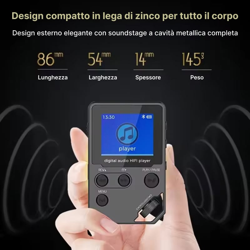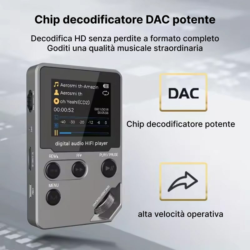 Cattura momenti importanti, riunioni o memo vocali con la funzione di registrazione integrata che salva file in formato MP3, trasformando il lettore musicale in dispositivo versatile.