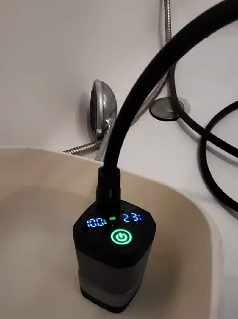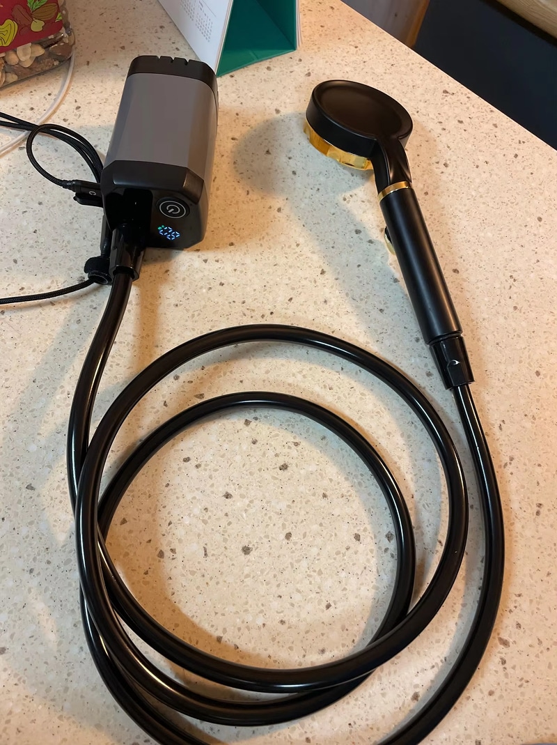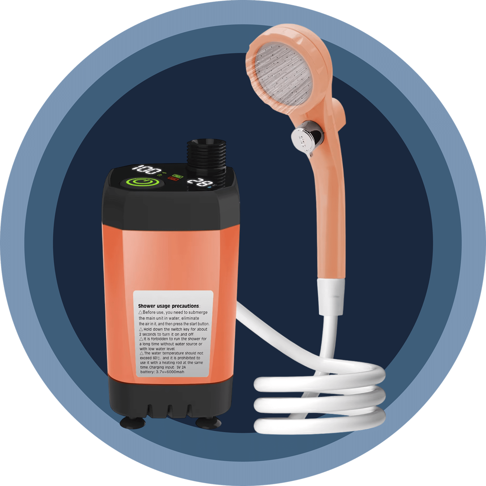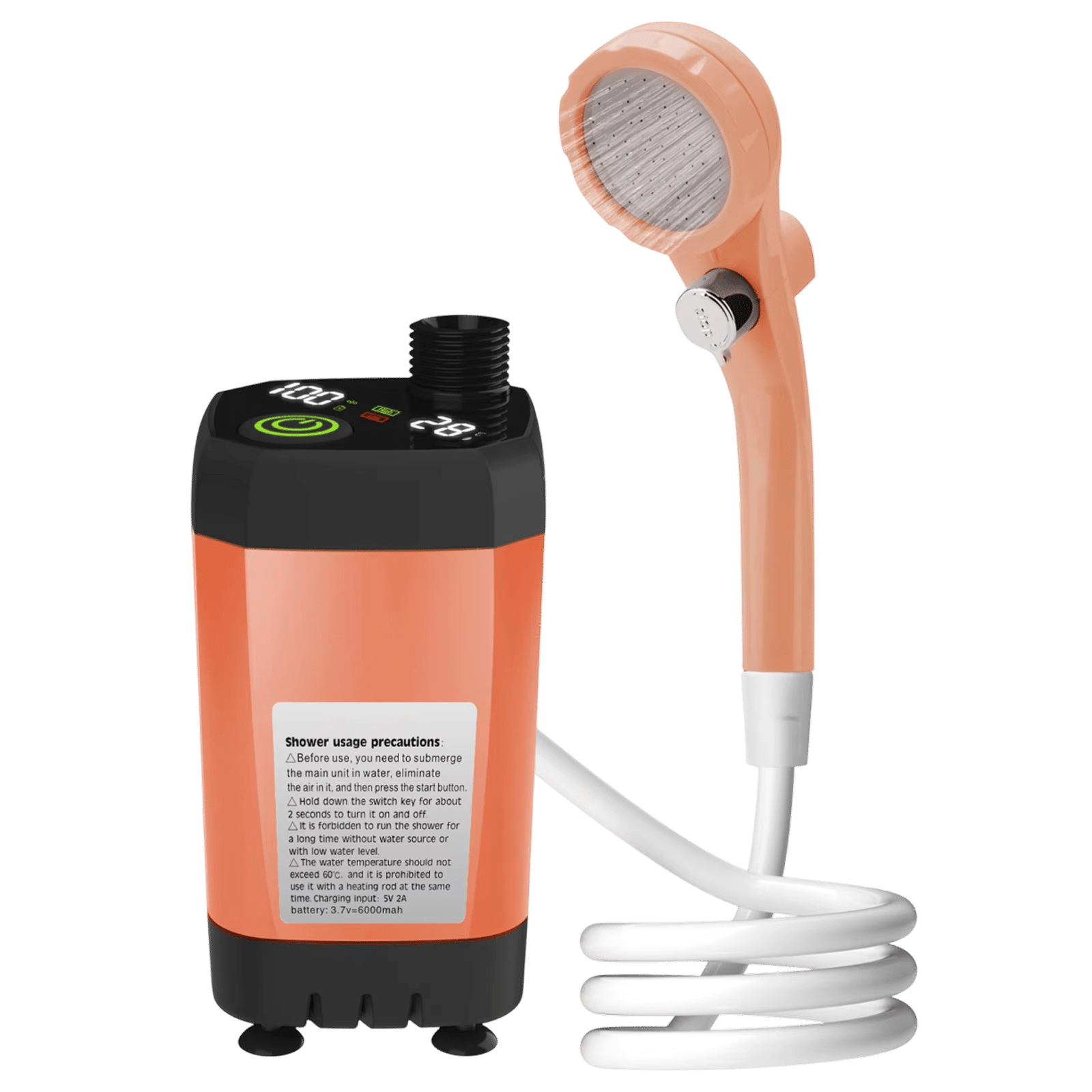 The 6000mAh battery lasts for 18-20 showers (about 35-40KG each) on a full charge, making it perfect for extended trips.