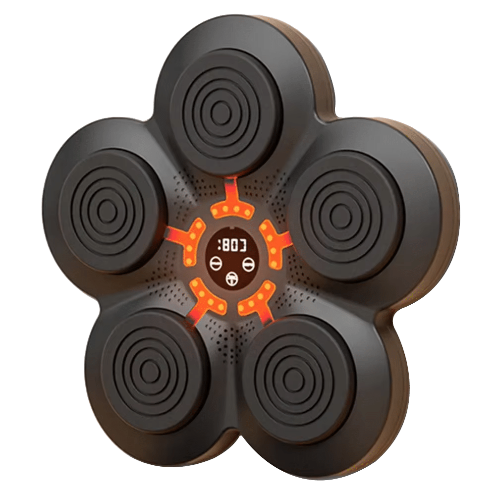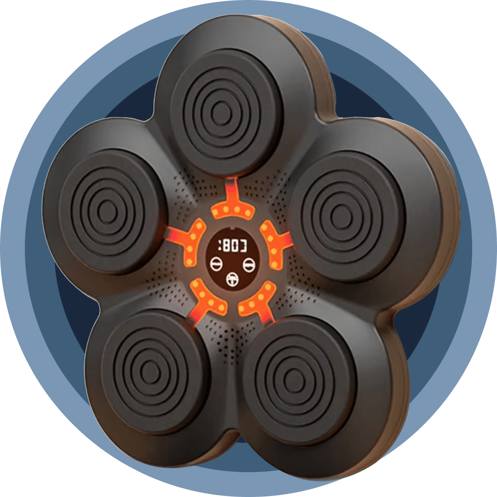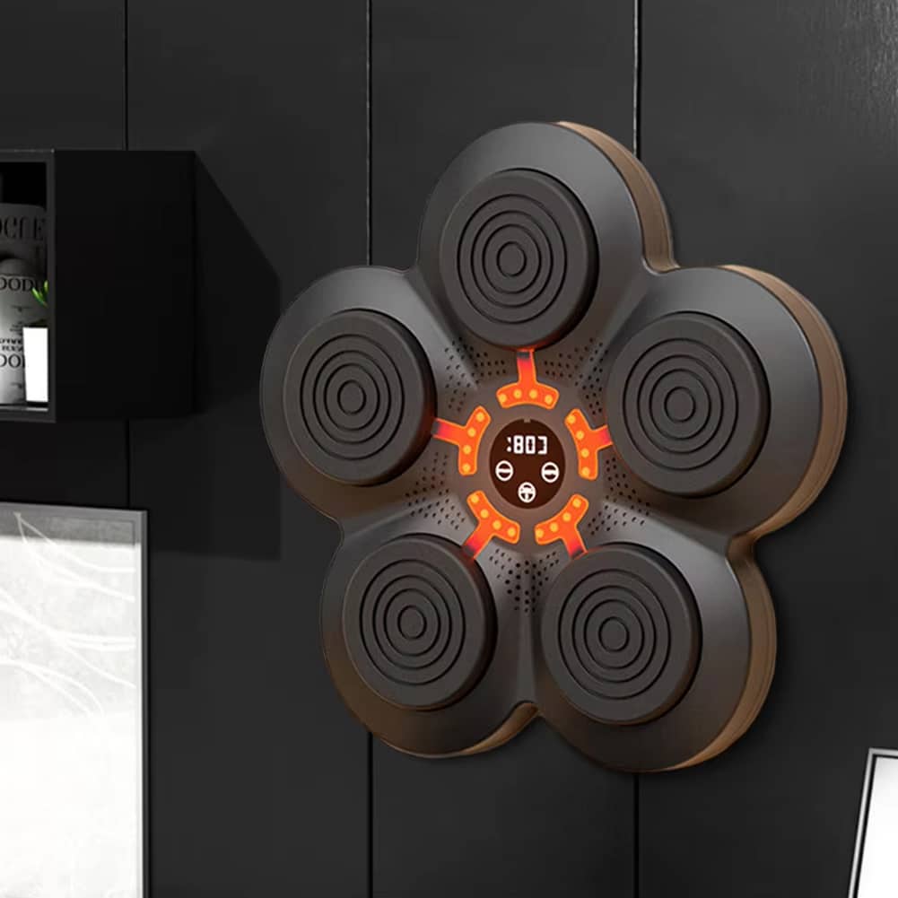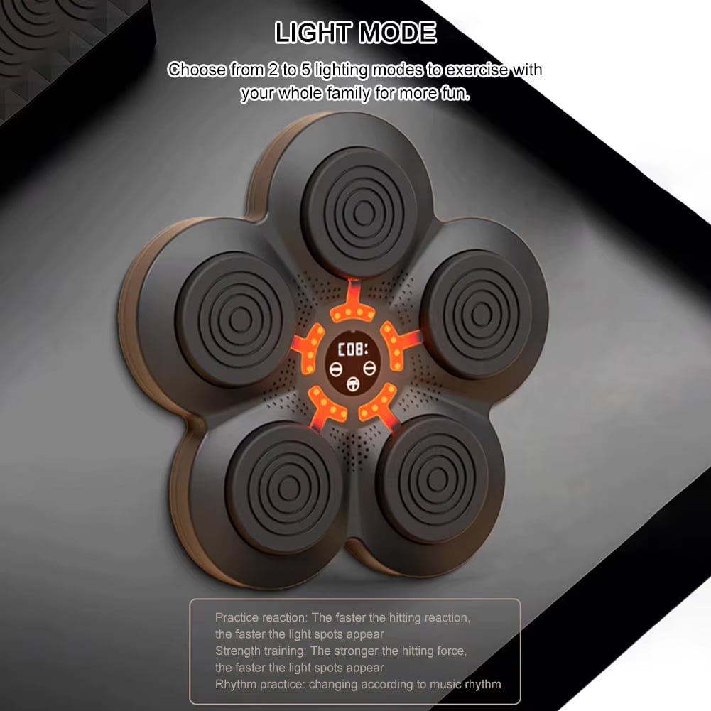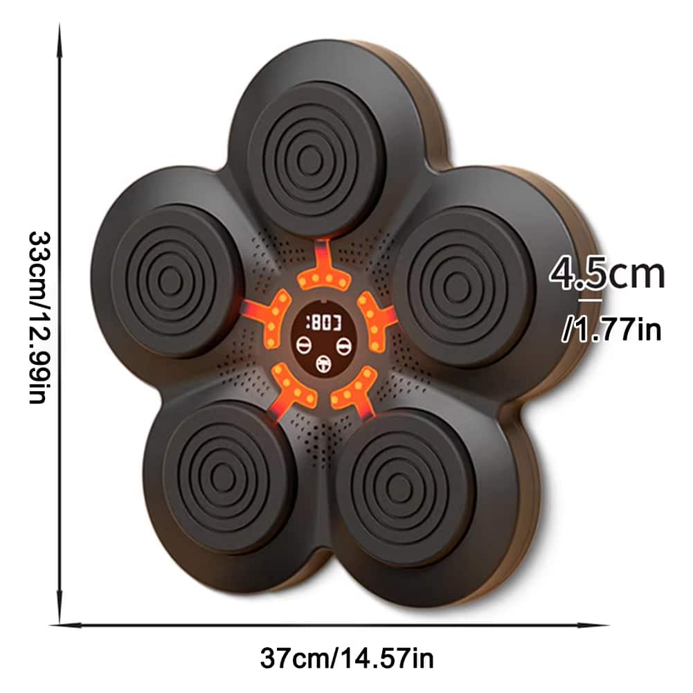 The device connects wirelessly to any Bluetooth-enabled device within 30 feet range. It supports all music apps and can play any audio format. The system synchronizes light patterns with your music’s rhythm for coordinated training.