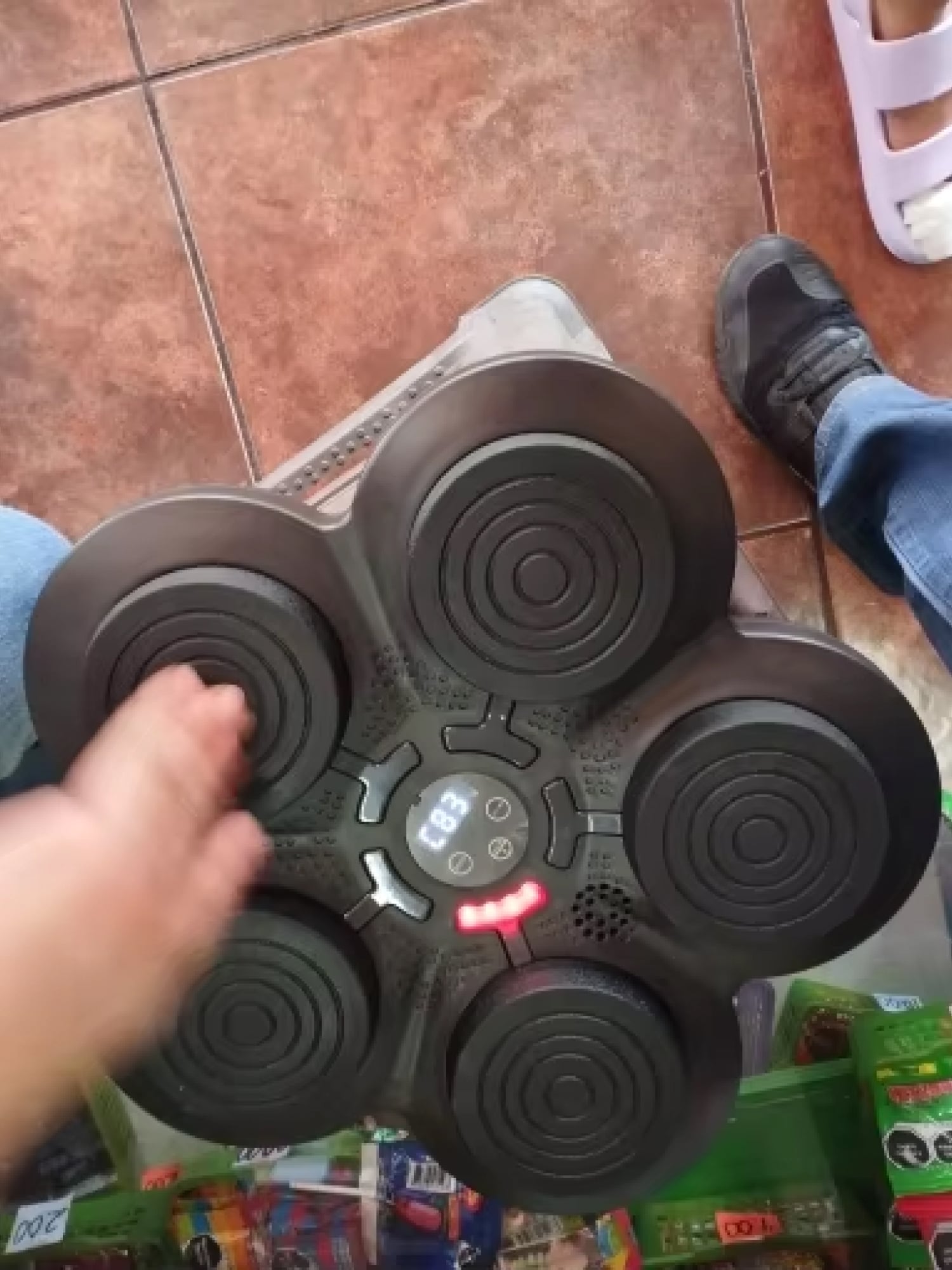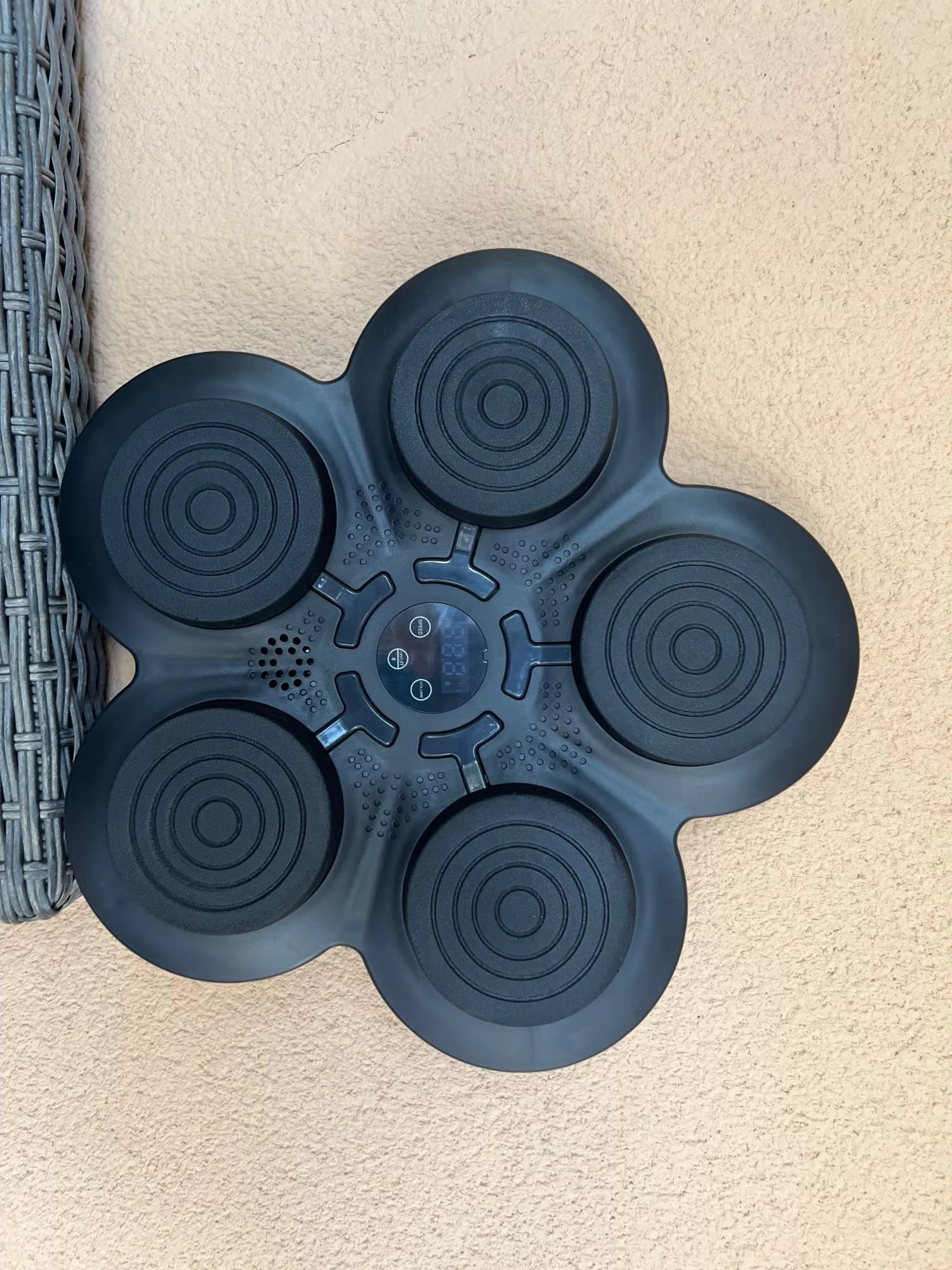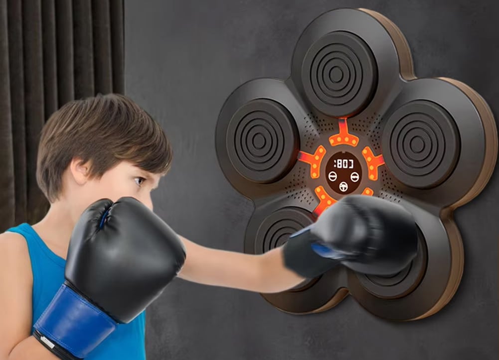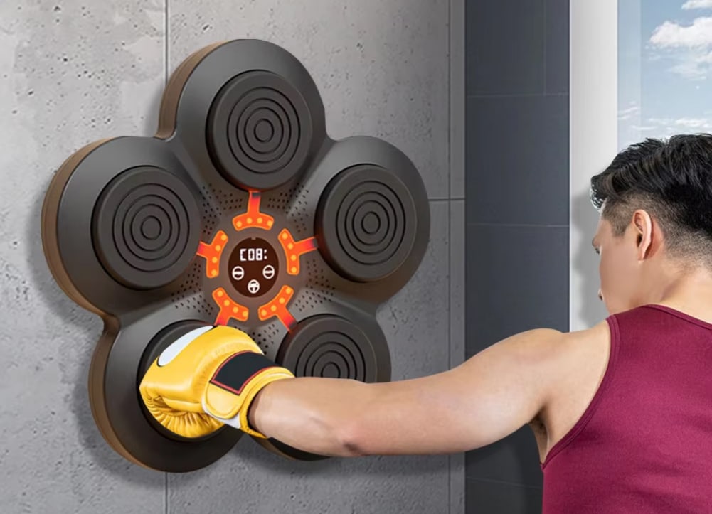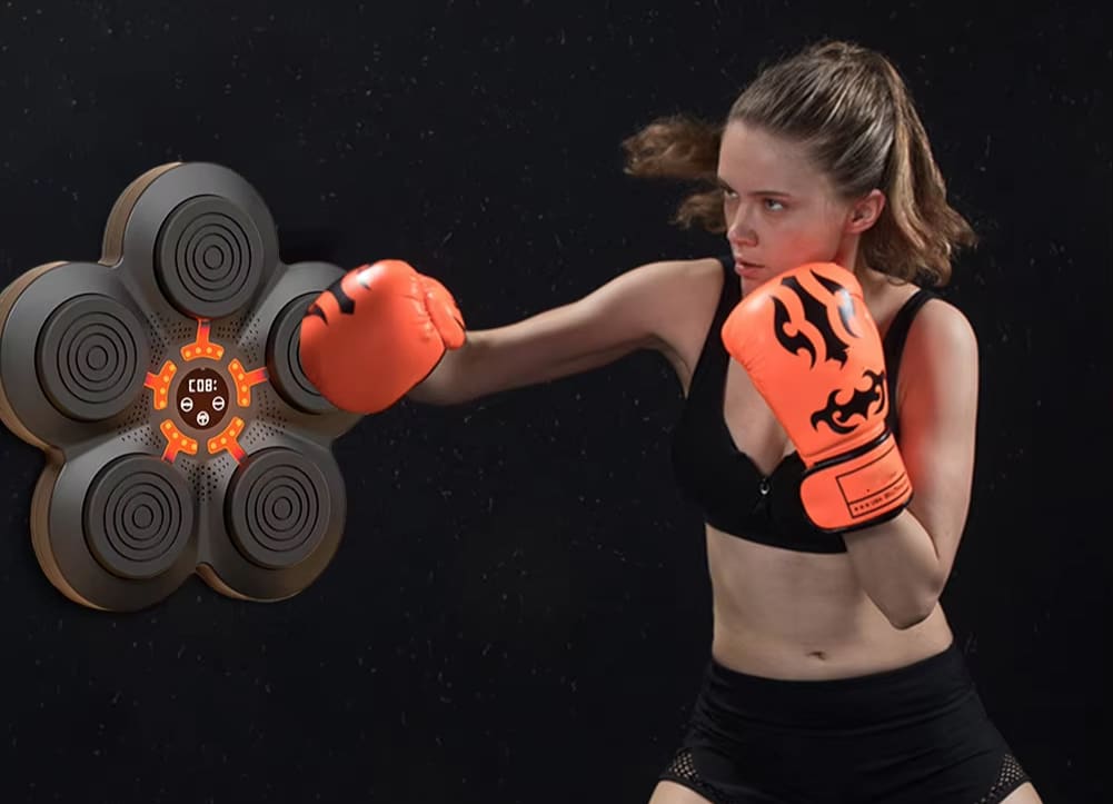 The device connects wirelessly to any Bluetooth-enabled device within 30 feet range. It supports all music apps and can play any audio format. The system synchronizes light patterns with your music’s rhythm for coordinated training.