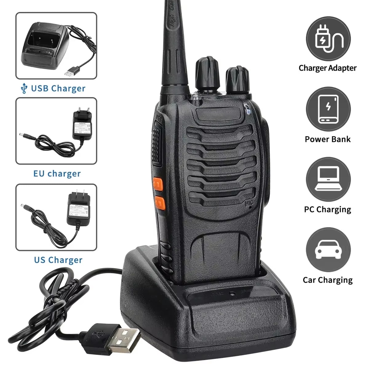 Yes, PinoCamex Long Range Walkie Talkie supports USB charging and are fully compatible with power banks, making them ideal for extended outdoor use where wall outlets aren't available.