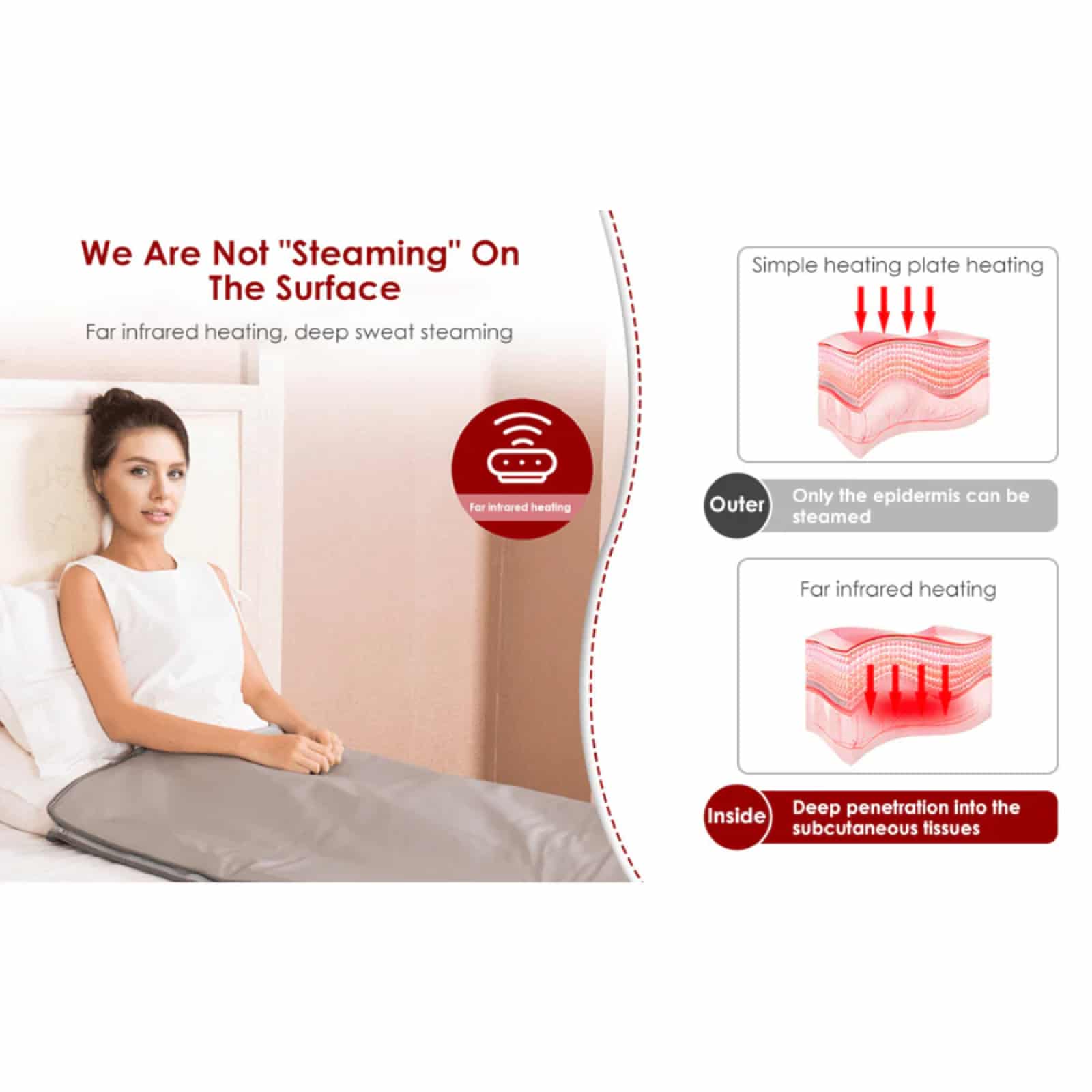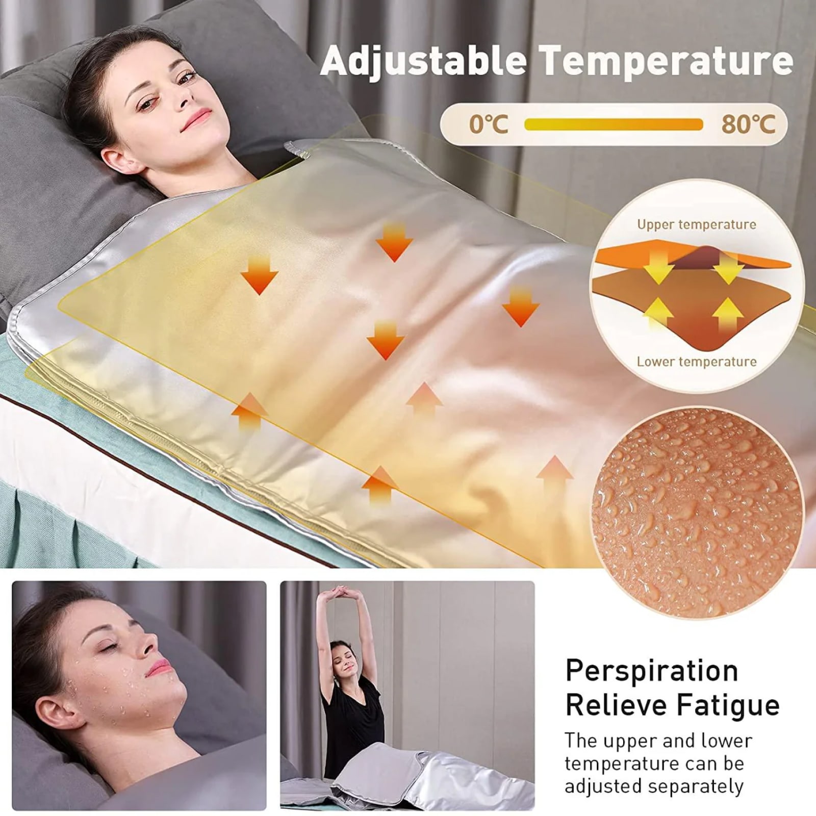 The SauNesto Sauna Blanket offers adjustable settings ranging from 77°F to 176°F, allowing you to customize your heat therapy experience to your comfort level.