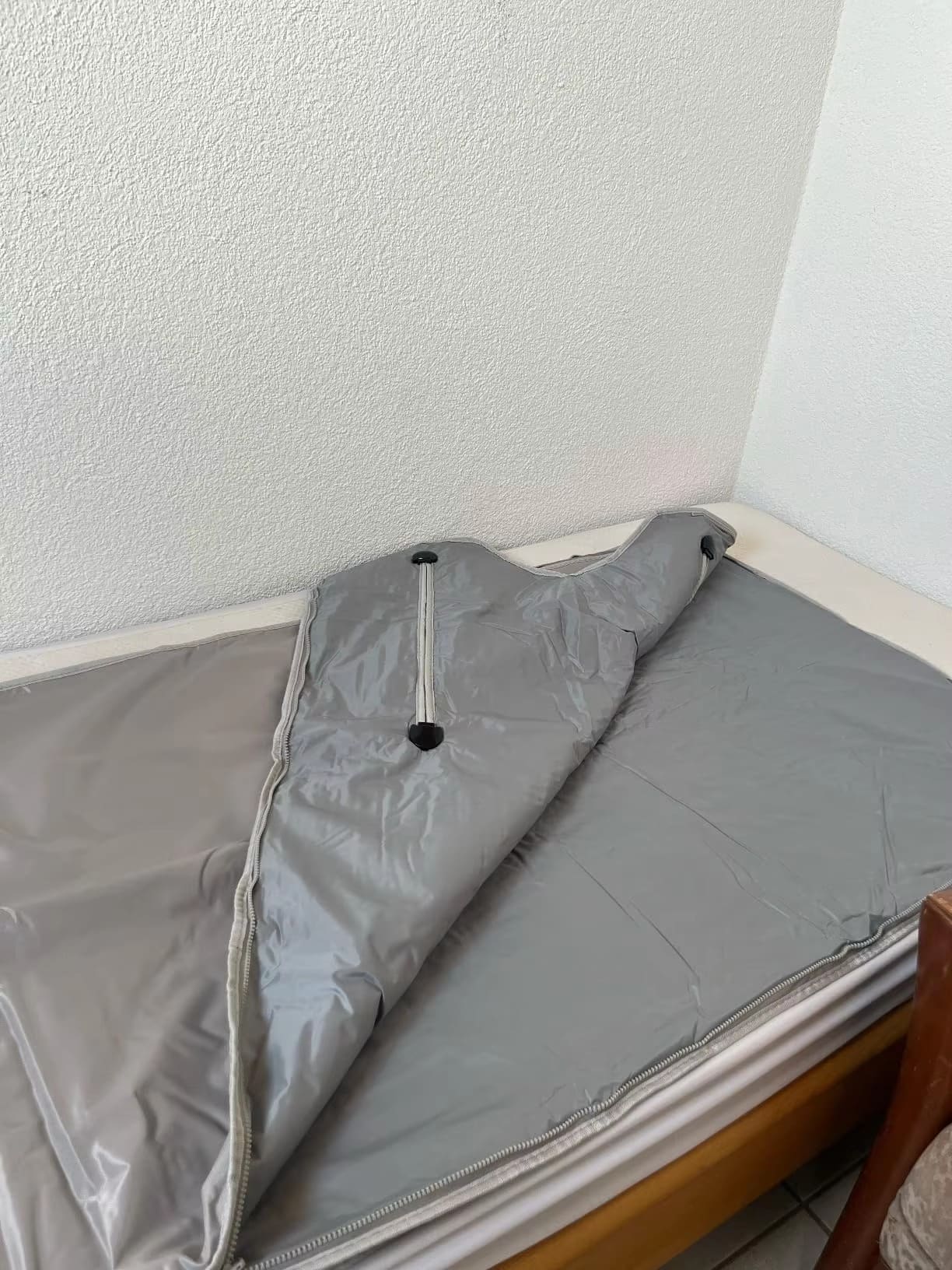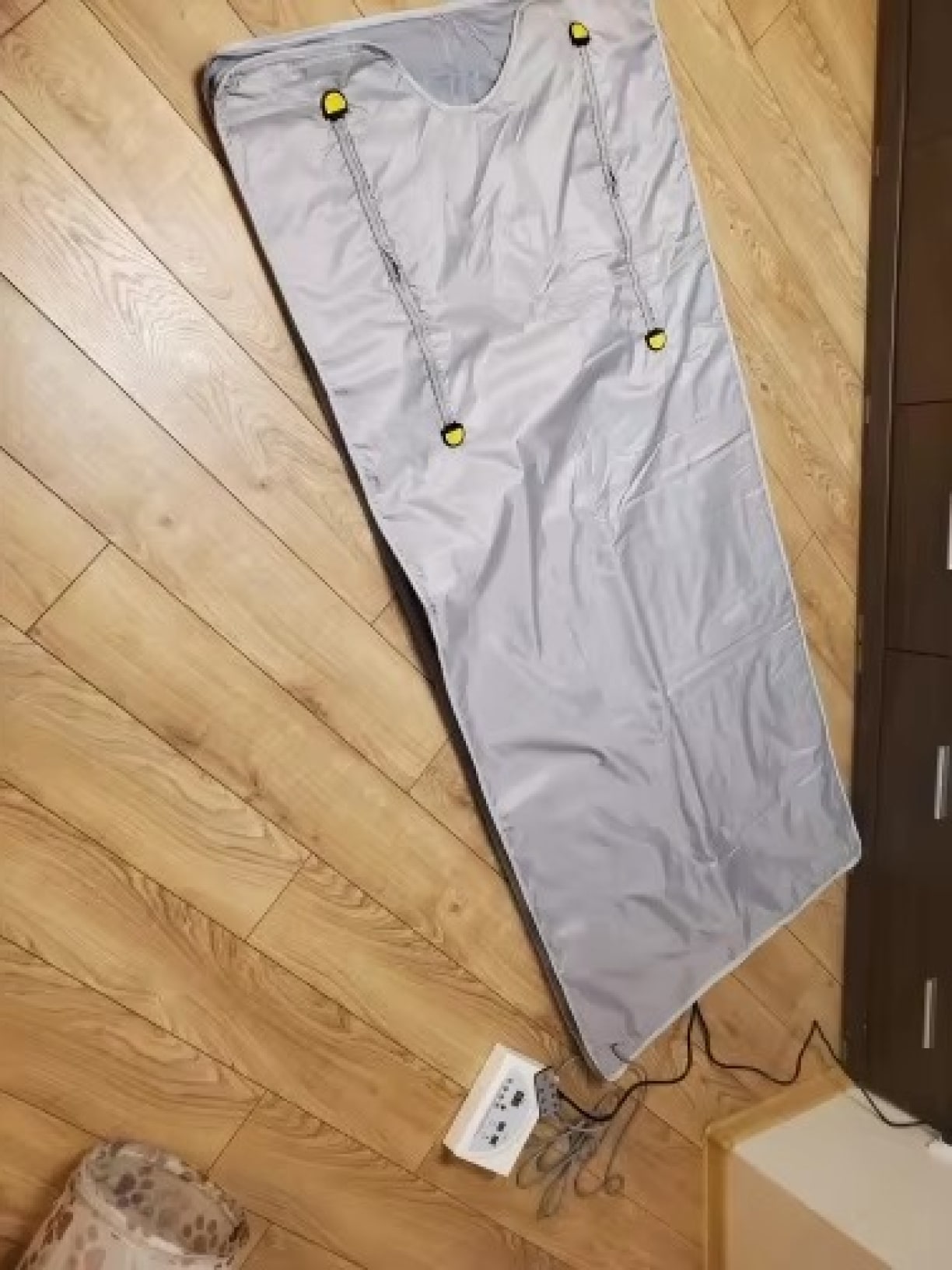 The SauNesto Sauna Blanket weighs approximately 8-10 pounds, making it lightweight enough to move easily between rooms, store conveniently, or transport when traveling.
