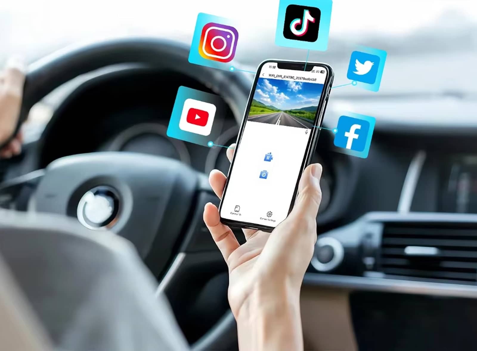 Gestisci e scarica i tuoi filmati direttamente sullo smartphone tramite l’app Viidure, senza estrarre la scheda di memoria dalla SnapiDual Dash Cam Per Auto.