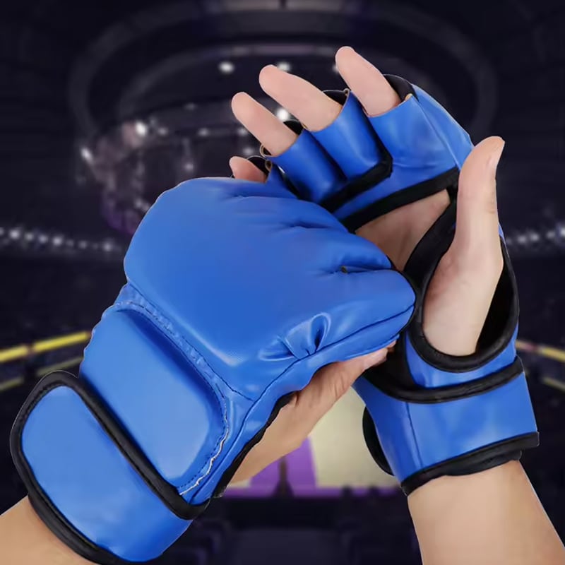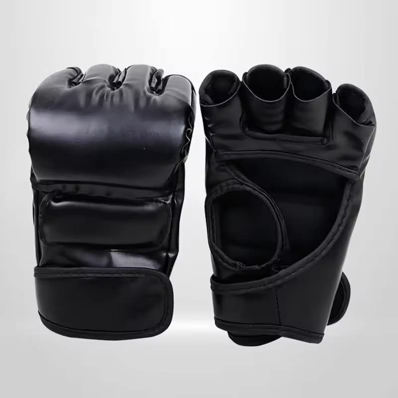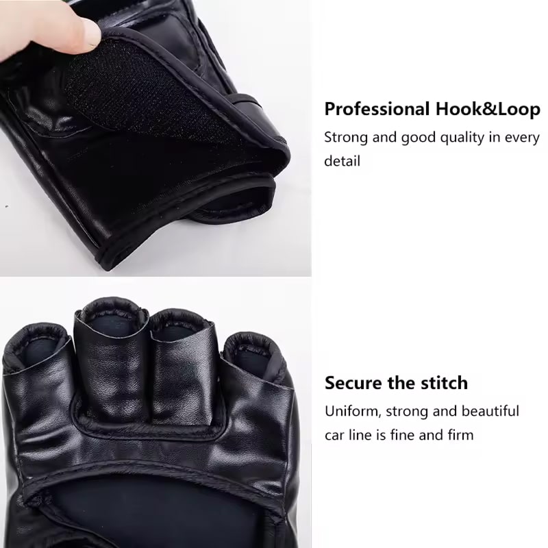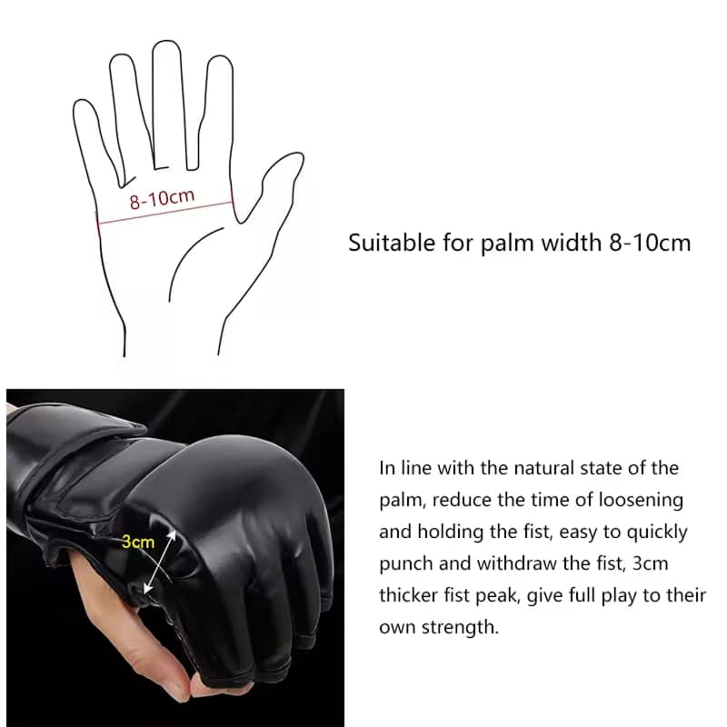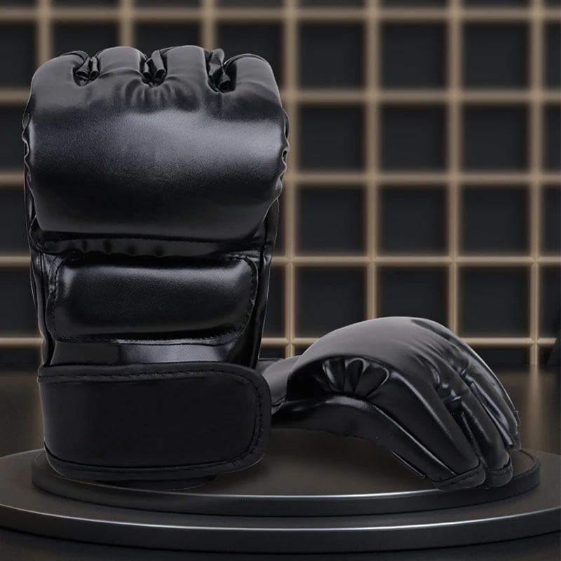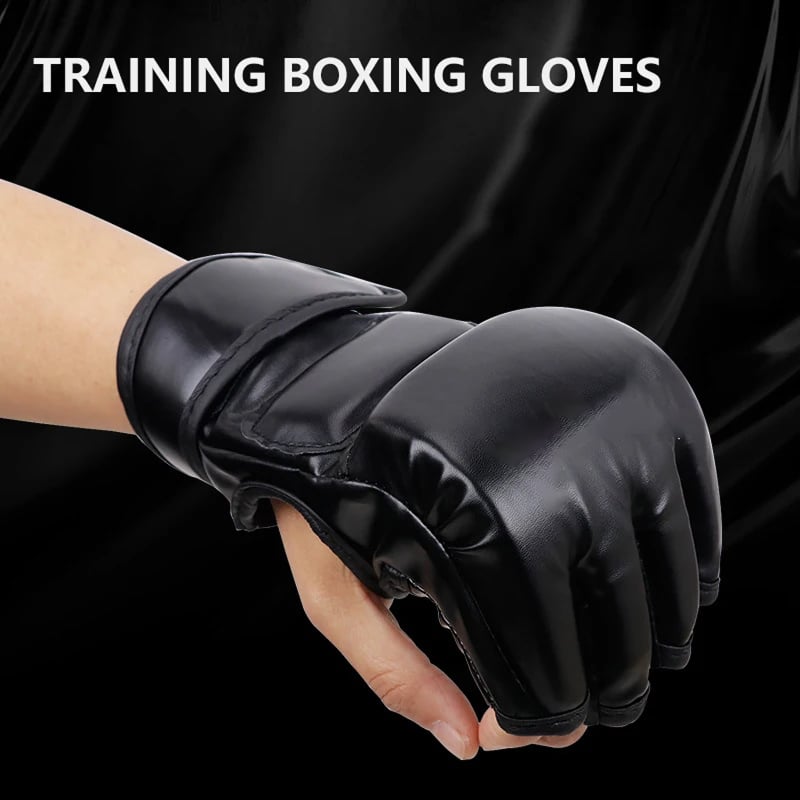 The half-finger design offers more flexibility and natural hand movement compared to traditional full-coverage boxing gloves for versatile training.