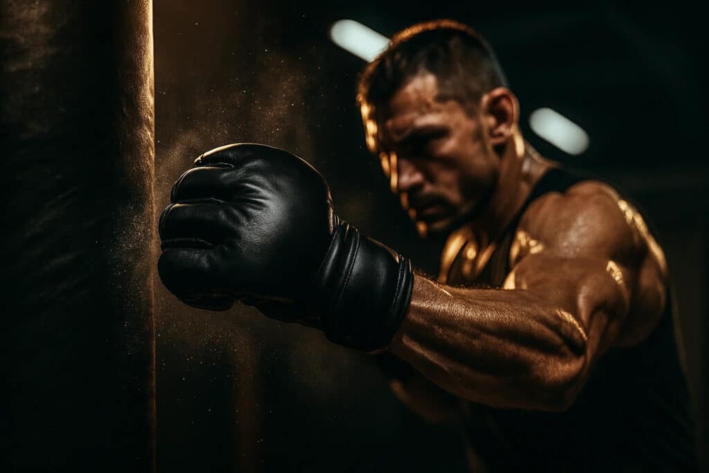 Yes, the premium leather cushioning and reinforced construction make them ideal for intensive heavy bag and sandbag training sessions.