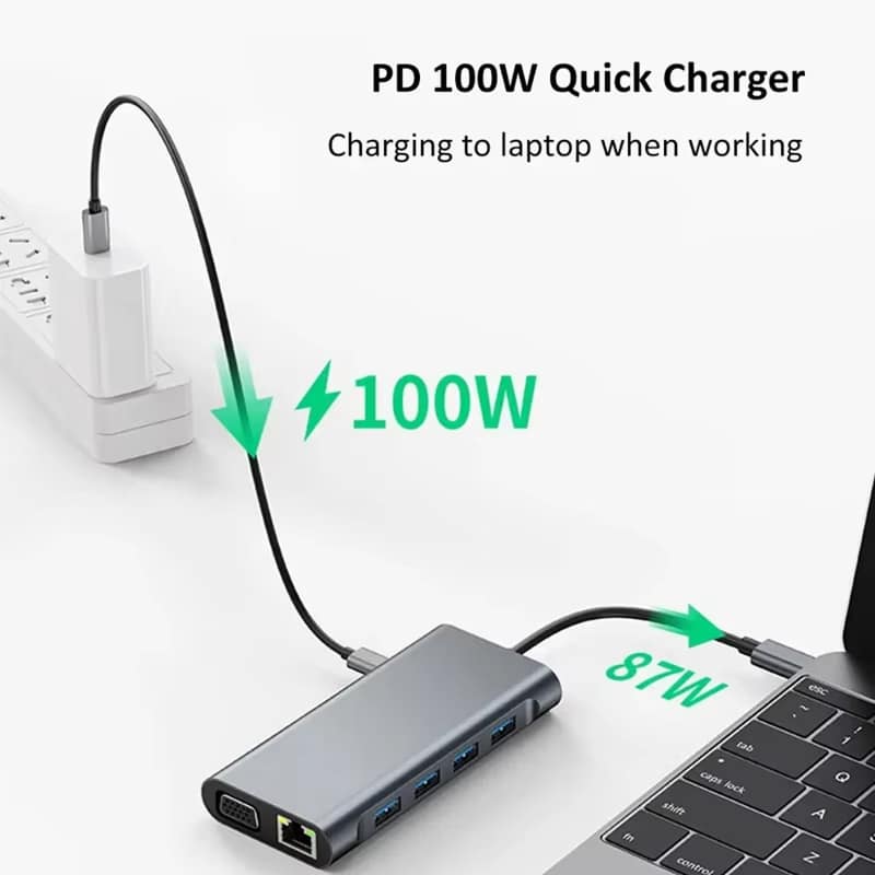 The VeroTexa PD port supports up to 100W input and delivers 87W output to your laptop, providing fast charging capabilities that match most original laptop charger specifications.