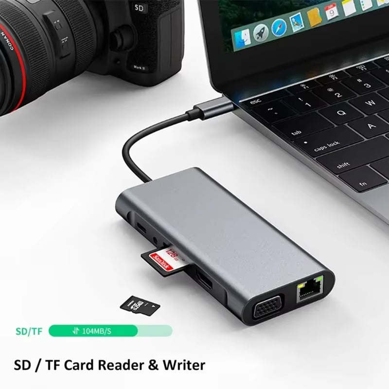 The VeroTexa Multiport Adapter requires no drivers or complicated setup procedures. Simply connect it to your device's USB-C port and immediately access all 11 functions.